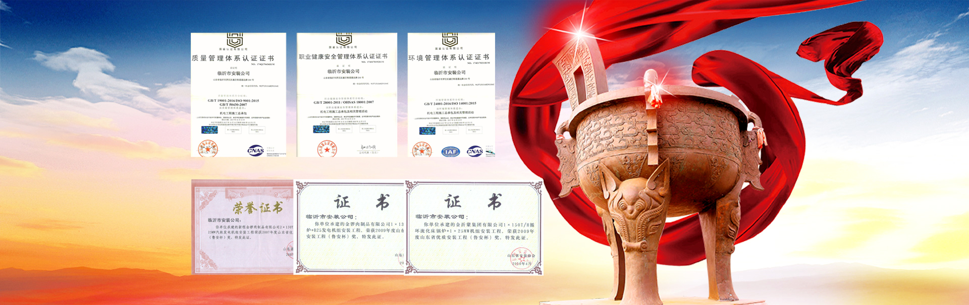山東臨安建設有限公司(原名臨沂市安裝公司)始建于一九六六年,是由老國企改制的股份制企業,公司總部位于羅莊區通達路211號,現有職工1000余名,各類工程經濟技術人員816名,其中高中級職稱64名,初級職稱204人。主要從事機電工程施工總承包,電力施工總承包,石油化工施工總承包,建筑裝飾裝修施工總承包,鍋爐安裝、改造I級(參數不限),GB1、GB2(2)級、GC1級、GD1級壓力管道安裝,起重機械B級安裝,電力設施承裝、承試,并取得了GB/T19001-2008質量管理體系認證證書、GB/T28001-2011職業健康安全管理體系認證證書、GB/T24001-2004環境管理體系認證證書,資信等級“AAA”級。